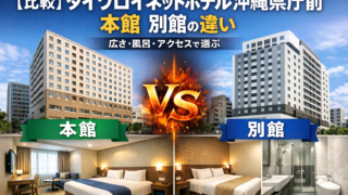 ダイワロイネットホテル沖縄県庁前の本館と別館の違いを比較。部屋の広さ、お風呂、使いやすさ、向いている人を分かりやすく整理し、観光・出張でどちらを選ぶべきか解説します。