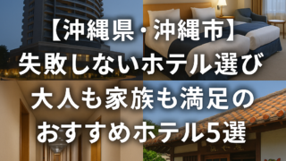 ホテル 沖縄 【沖縄県・沖縄市】失敗しないホテル選び|大人も家族も満足のおすすめホテル5選 沖縄県・沖縄市で失敗しないホテル選びをしたい方へ。大浴場やサウナ、部屋の広さ、子連れでも安心できるポイント、立地を重視して口コミ評価の高いおすすめホテル5選を紹介します。 2025.12.15 ホテル 沖縄