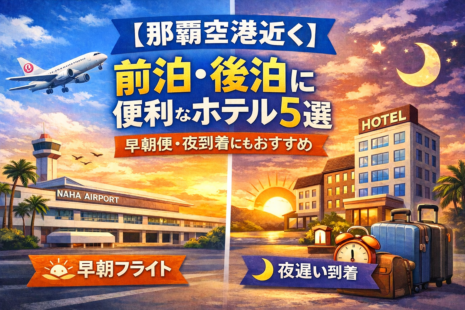 早朝便や夜到着で那覇空港近くに泊まるなら、空港アクセスの良さに加えて、駅近、深夜チェックイン、朝食の有無も見ておきたいところです。今回は、楽天トラベル掲載の中から、前泊・後泊に使いやすいホテルを厳選してご紹介します。
